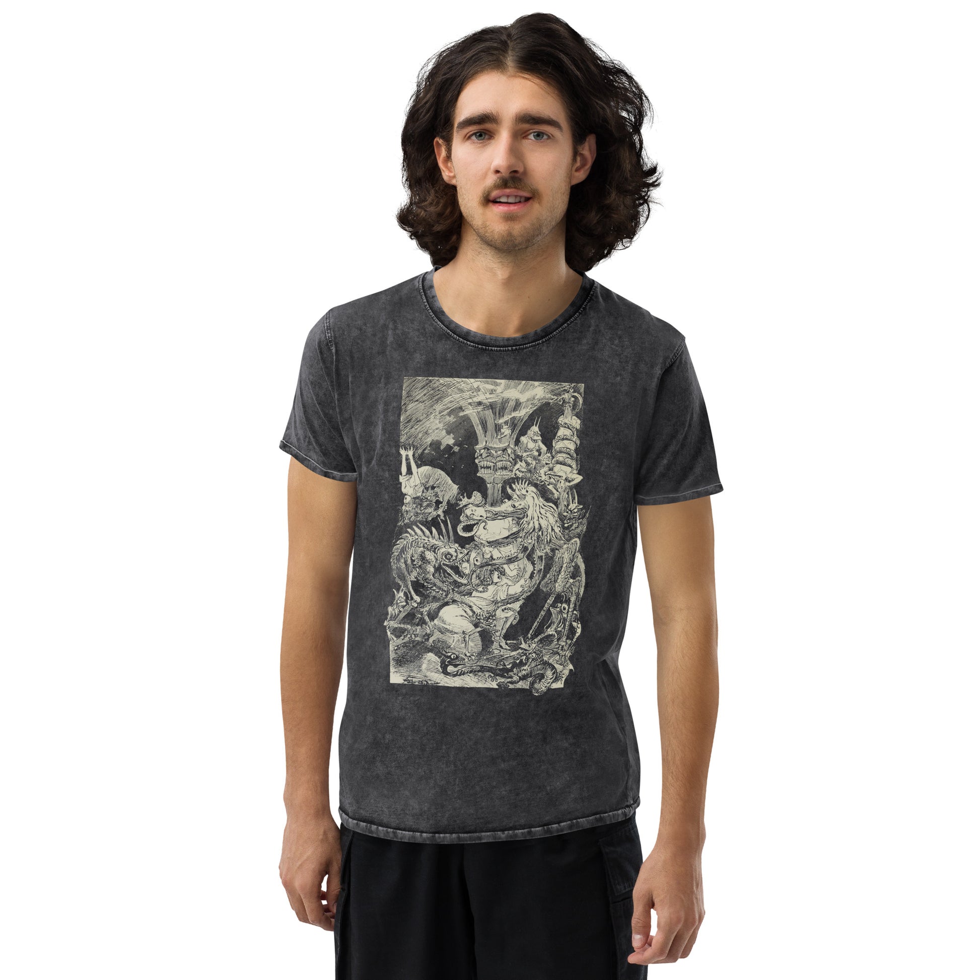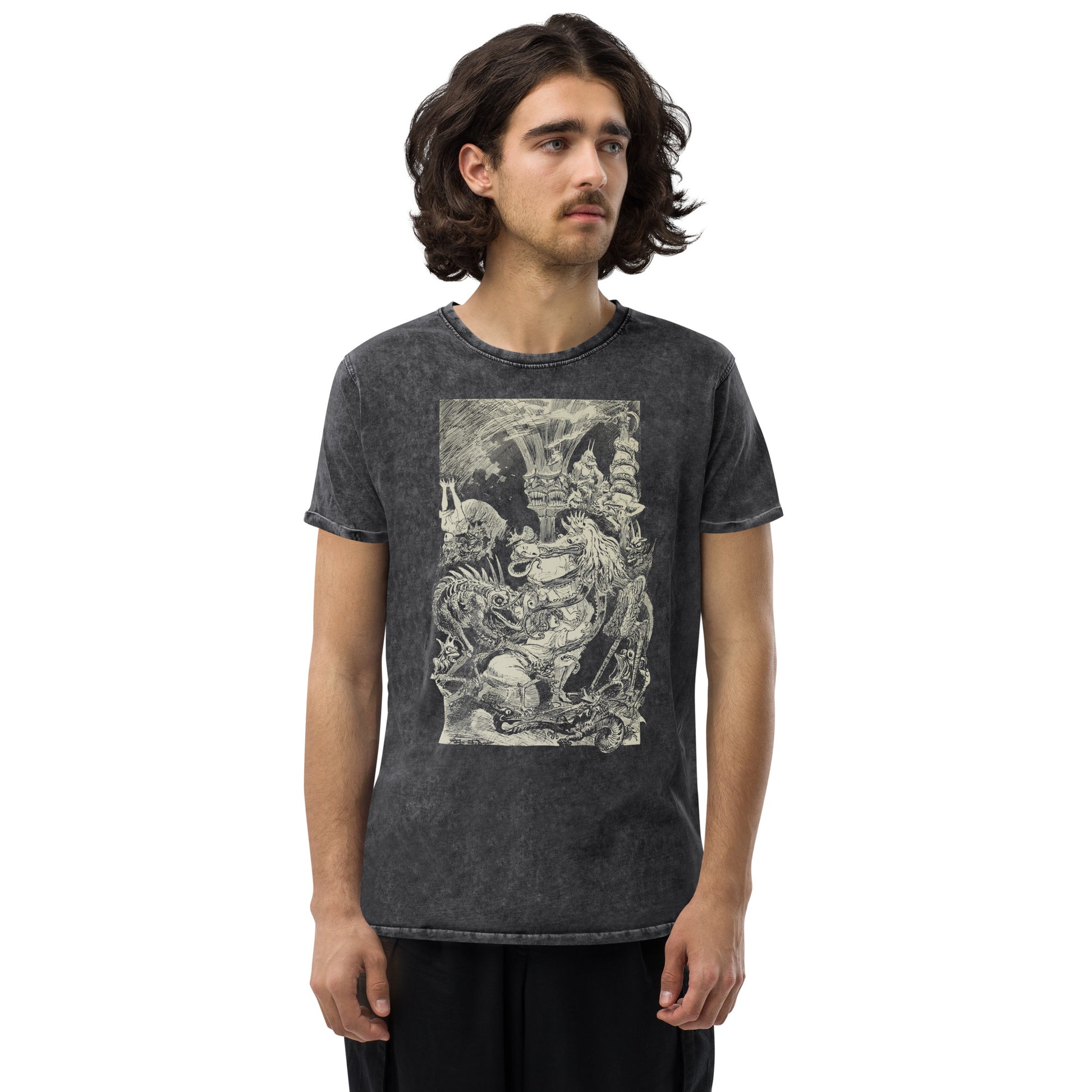This denim t-shirt is made out of 100% combed cotton and has a classic rounded neckline with ribbed sleeve cuffs. It's soft, comfortable, and a must-have for every fashion enthusiast!